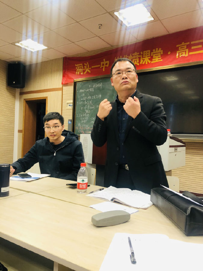 洞头一中的达文园老师,诙谐幽默,循循善诱。从伽利略的理想斜面实验入手,提出了能量转化与做功的密切关系,主次分明,有效地对本节课的重难点内容进行了突破。