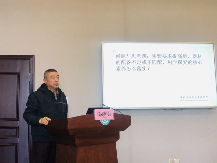 问题与思考四:新教材对实验的要求提高后,器材配备不足或不匹配的情况下,科学探究的核心素养怎样落实。邵老师以乐清中学的金立峰老师和曲黎黎老师为例,鼓励大家积极开发实验,自制实验器材。