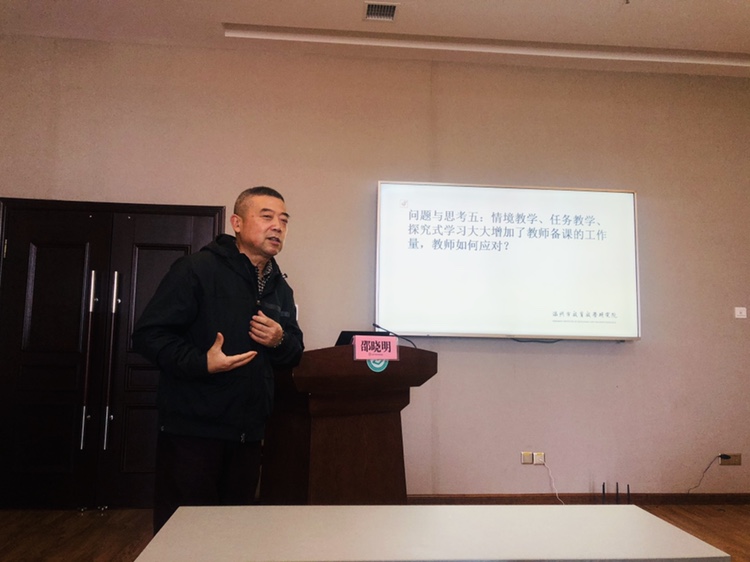 4月9日上午,我们邀请了温州市物理教研员,特级教师邵晓明老师进行了专题讲座《高中物理新课程新教材实施的思考与建议》,邵老师与学员们分享5个方面的问题。