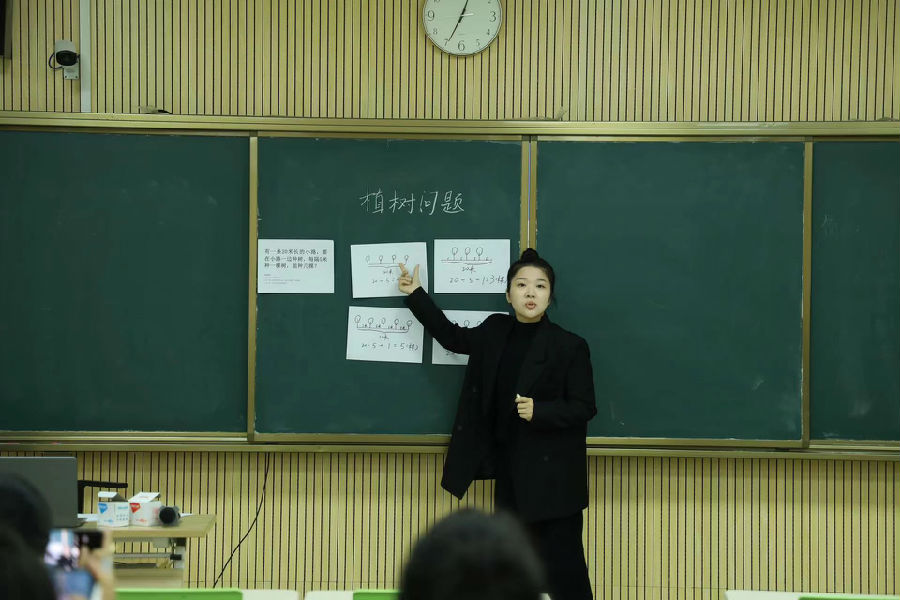 高玉立老师的《植树问题》,简约而不简单,以大环节引领课堂,以关键问题深入课堂,充分暴露孩子们的学情,在不断的质疑与辨析中,帮助孩子们建立植树问题的模型,渗透一一对应的数学思想方法,一切都是自然而然,水到渠成。