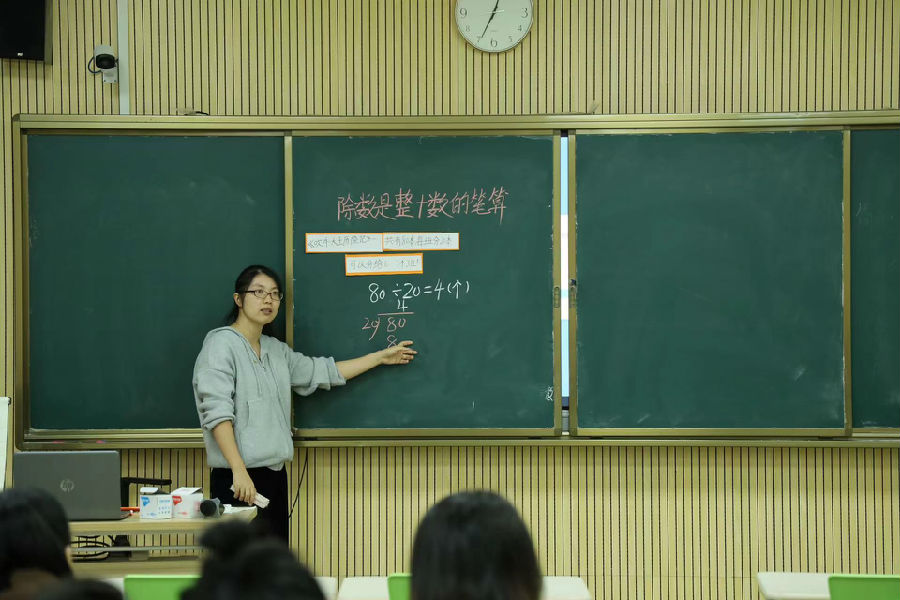 在《除数是整十数的笔算除法》的教学中,夏云霞老师利用知识迁移和以形助数的方法,把抽象的算理算法化解得形象生动,易于学生的理解和消化,通过三个对比落实商的位置,和除数乘商的积如何写。以及到最后解决生生活中的实际问题,则充分体现“数学源于生活,赋于生活,用于生活”的思想。