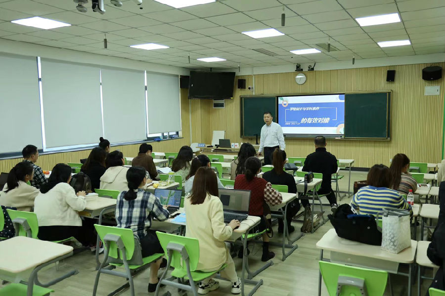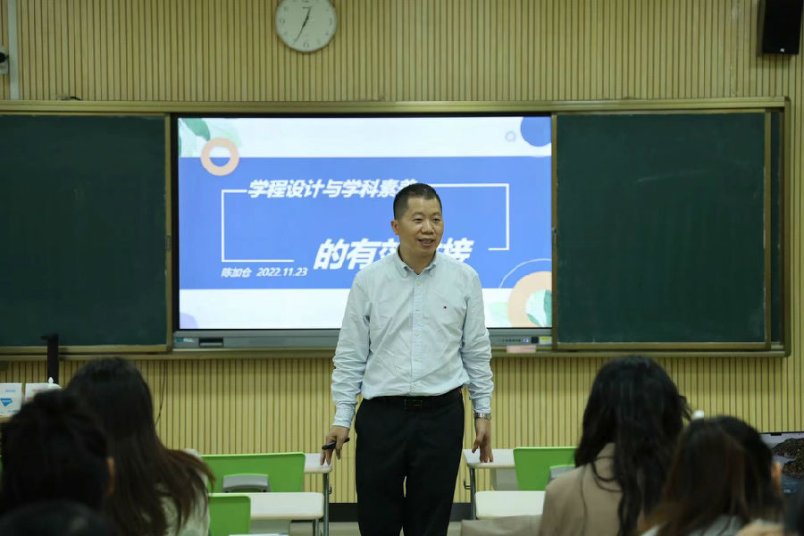 紧接着陈特给我们带来了干货满满的讲座——《学程设计与学科素养的有效对接》。陈特从什么是学程设计、学程设计的主题活动、学程设计的阅读式学习三个方面展开。学程设计怎么关注孩子的学,根据不同的教材内容设计不同的学习方式,最后对接我们的学科素养,促进孩子们的发展。让在座的老师们受益匪浅。