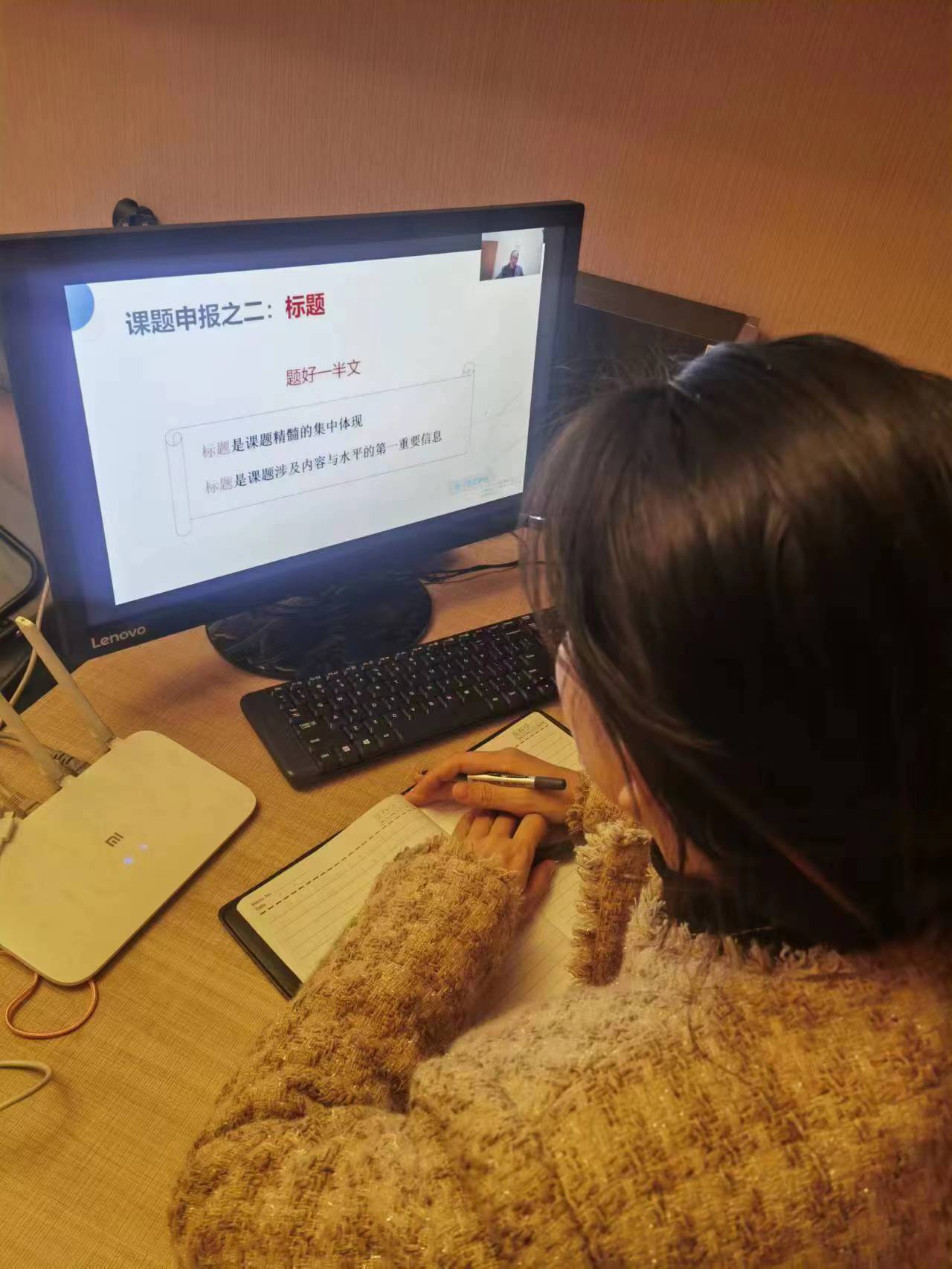 晚上,来自金华市教育教学研究中心的正高级讲师、浙江省特级教师张国红老师作题为《课题申报思路与技巧》的讲座。