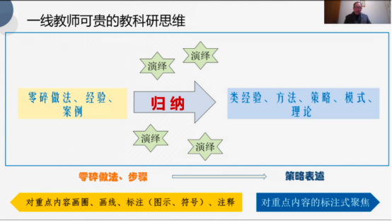 在讲座中,张国红老师分选题、标题、结构、核心概念、文本技巧、常见问题等六大方面阐述了课题申报的相关技巧,并利用举例子、打比方、作比较等方式对各个要点进行深入剖析。张老师强调一线教师除了要会演绎,更重要的是要学会归纳,以培养专业的教科研思维。