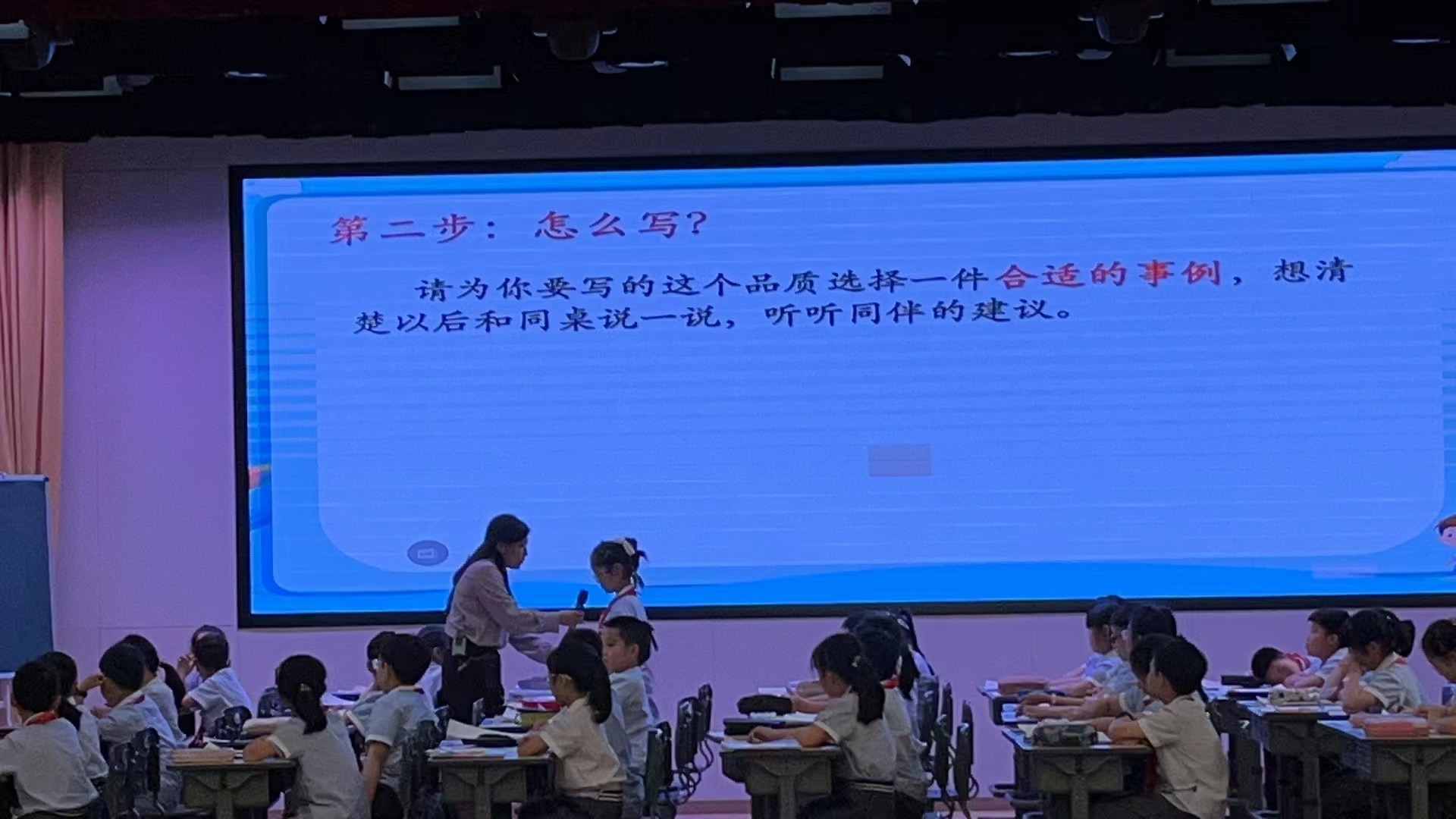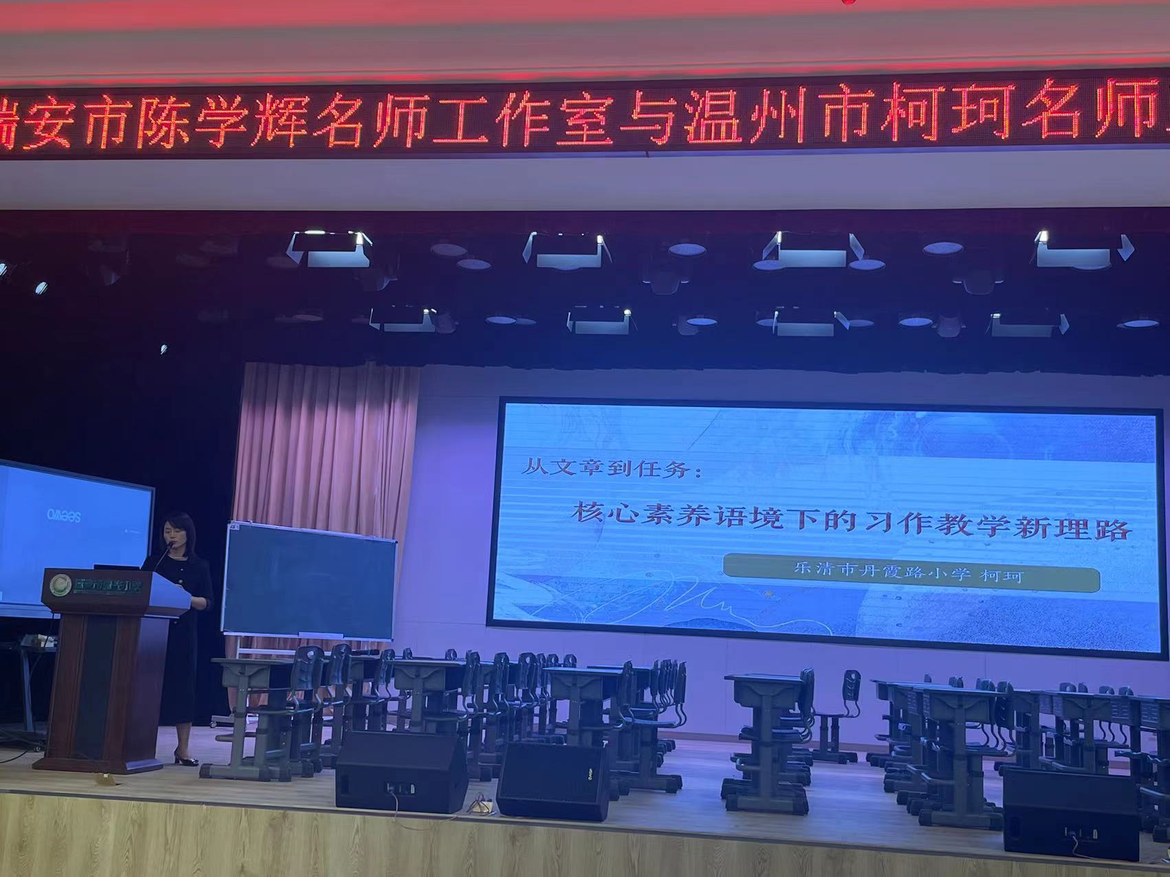 下午三节课后,瑞安市阳光小学的陈慧敏老师来为大家分享《创情境练表达,给支架助写作》。随后,陈学辉老师就下午三节课做课例点评与活动总结。