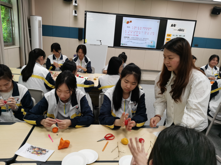 然后由文成职业高级中学程蕾蕾老师展示公开课《指尖上的米塑—水果》。程老师带领学生了解温州独有的传统民间工艺“温州米塑”的历史、特点、制作工艺,掌握米塑的基本技法,并用这些技法创造一个水果作品。当学生的作品呈现出来的时候,我们无不感叹传统文化之精髓。