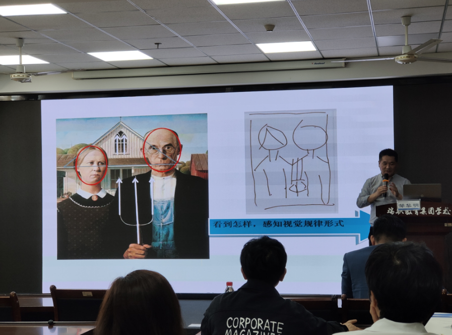 下午的专家主题讲座,首先由省特级教师、正高级教师邹黎明老师带来精彩的讲座《学科融合中的美术教学》。邹老师的讲座给人感觉十分轻松,他幽默风趣地向学员们讲述在美国的学习,感觉似聊天,其实是一场美育之旅,这种聊天式地渐入佳境,何尝不是大家所追求的新的教学方法呢?