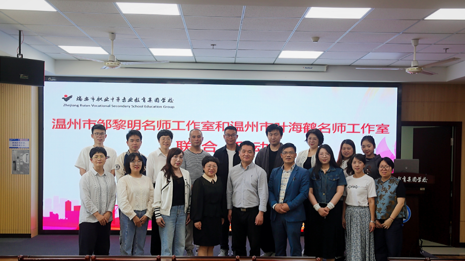 5月9日,温州市叶海鹤名师工作室第21次研修活动在瑞安市职业中等专业教育集团学校举行。活动由正高级讲师、浙江省特级教师、瑞安市职业中专教育集团学校党委委员叶海鹤老师主持。来自温州各县市的三十位骨干教师齐聚在瑞职交流学习。