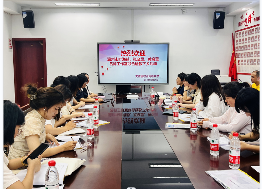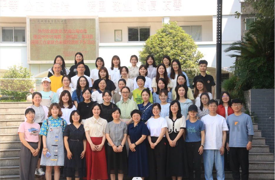 为了进一步加强山海协作,发挥名师示范引领作用,5月31日,叶海鹤、张晓晨、黄晓蕾名师工作室联谊活动在文成县职业高级中学举行,参与现场活动的有三个工作室学员及文成县职业高级中学的教师共50多人。