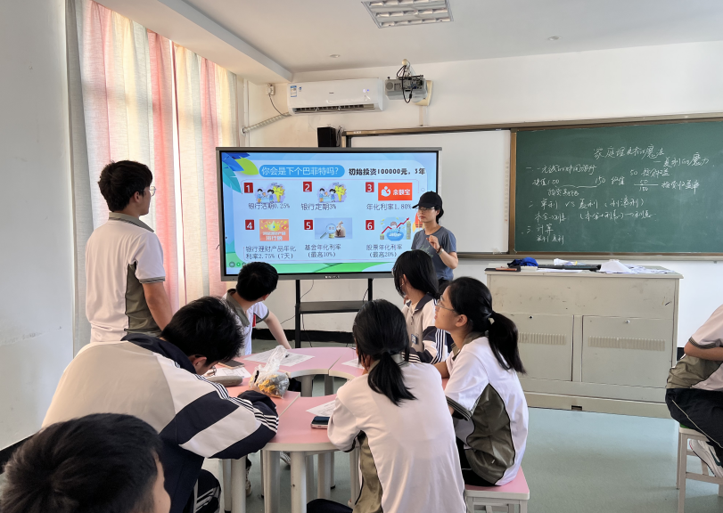 同时进行的陈蓓蕾老师带来的《家庭理财-复利的魔方》一课。陈老师在教学过程中融入课程思政,通过小组讨论的方式,在探究中感受复利的魅力,有效落实教学重难点。