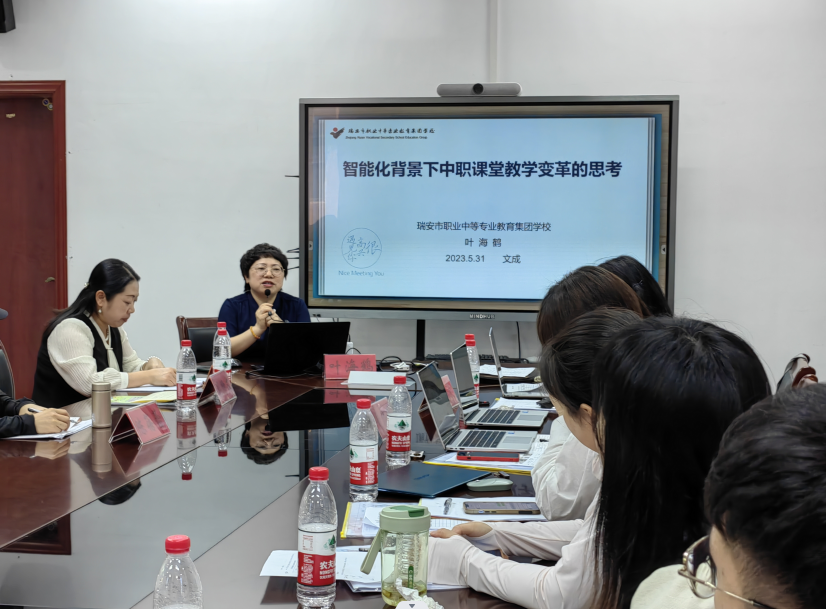 在精彩的评课后,瑞安市职业中等专业教育集团学校、浙江省特级教师叶海鹤作了《智能化背景下中职课堂教学变革的思考》的专题讲座,叶老师在讲座中为我们指明了未来课程的发展趋势、课程体系的重构和学科专业之间的几种融合,呼唤教师走向跨界与融合,给老师们对教学变革指明了新的方向。