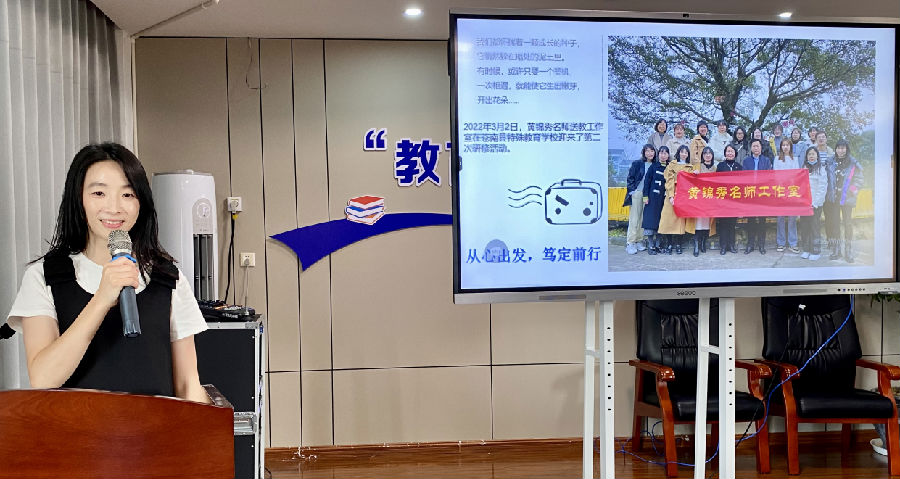 时光匆匆,倏忽间,两年的名师工作室将在绿意盎然的季节里结业。工作室主持人黄锦秀用简短的视频,带领学员们一起回顾了两年来的美好时光。学员们欣赏着过往历程,心中无限激动。感恩遇见,感谢黄老师两年的引领,让每位老师在特殊教育的舞台上绽放光芒。接着,黄锦秀老师从感恩、使命、期待三个方面进行工作室总结汇报。