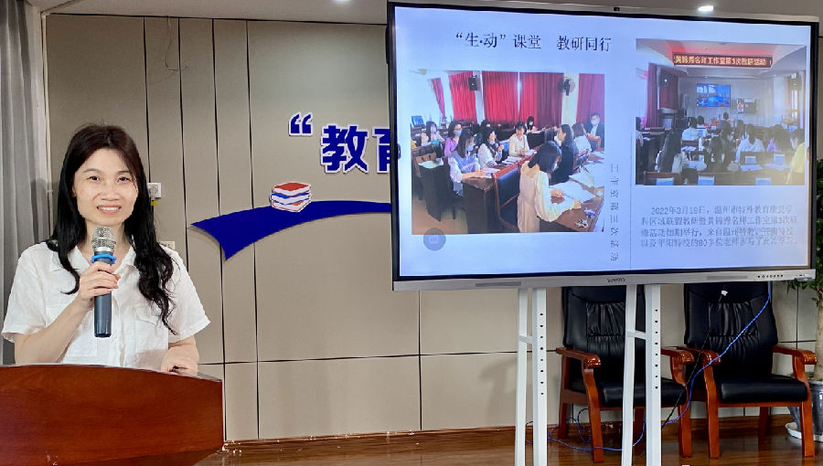作为温州市特殊教育首个名师工作室,她特别感恩,感恩温州市教育局、温州市名师办、苍南县名师办领导对特殊教育的关心和支持,为我们搭建了这个教学研究交流的平台;感恩温州特校、苍南特校的领导对工作室建设的重视,感恩学员们的通力合作,凝心聚力。身作为工作室主持人,她深知自己肩负着示范、引领、辐射的使命,所以从工作室开班的那天起,她有空就琢磨工作室的规划,如何针对学员的需求开展研修,如何提升学员的专业素养等,两年来对于每一次活动她都精心策划,认真组织,及时总结。特殊教育是一项伟大的事业,特殊教育教学研究之路,道阻且长,她激励学员们勤于阅读,善于思考,敢于实践,深耕特教,向美而行。