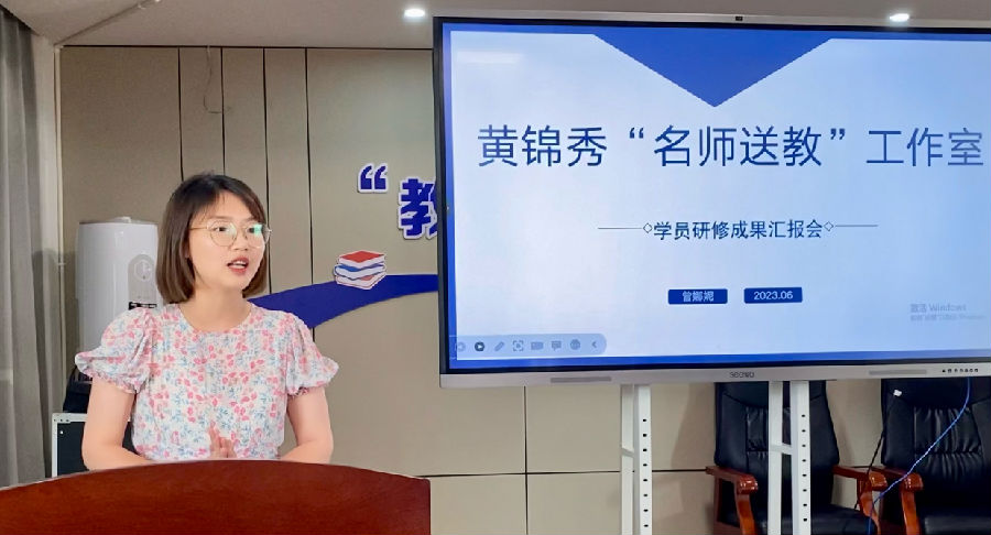 李林子老师以《从心出发 笃定成长》为主题和我们分享这两年研修学习的情况,从黄锦秀老师独特的专业魅力感染到工作室伙伴们勤于实践的耕耘精神。刘钞老师说:“花自向阳开,人自向光走,我们因寻梦而相遇,因有梦而相聚”。同时,她向老师们分享了自己学习的感受与收获。徐静静老师回顾这两年来的点点滴滴,深有感触地说:“黄老师总是用心安排每一次学习,耐心指导工作室学员的专业发展,用自己丰富的学识点燃了学员们钻研的热情。”王乐老师做了题为《心有所向,未来可期》工作室总结汇报,她表示,结业不是结束,而是新的开始,她将以此为起点,继续努力把在工作室中学到的教育教学方法应用到工作中。曾娜妮则老师从“明确方向、不断进行;端正态度、不断学习;坚持自律、不断努力”分享了自己在工作室学习路上的点滴收获。卢晓霞老师向大家表达了在工作室的心路历程,她特别感恩黄锦秀名师工作室这个学习与交流的平台,感谢导师的悉心指导,感恩同伴们的互助。