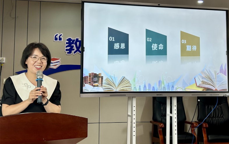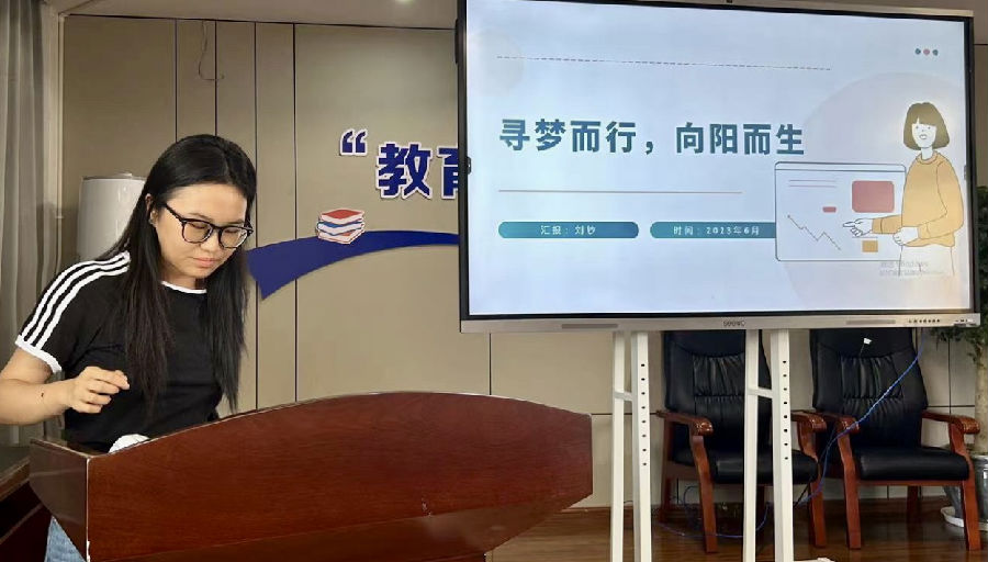 陈英姿老师从工作室建设、实践过程、实践成效等方面将工作室两年内开展的活动及取得的成绩进行了梳理,并通过PPT向大家展示了自己两年来取得的成绩。梁双燕老师从自我充电促提升和和适探索促成长两个方面分享了自己这599个日夜里的成长,回顾了工作室团队一起奋进、快乐学习与收获成长的故事。陈晓敏老师从相信发展,相信改变这两个关键词分享了自己这两在工作室助力下的学习成长历程的进步与期望。