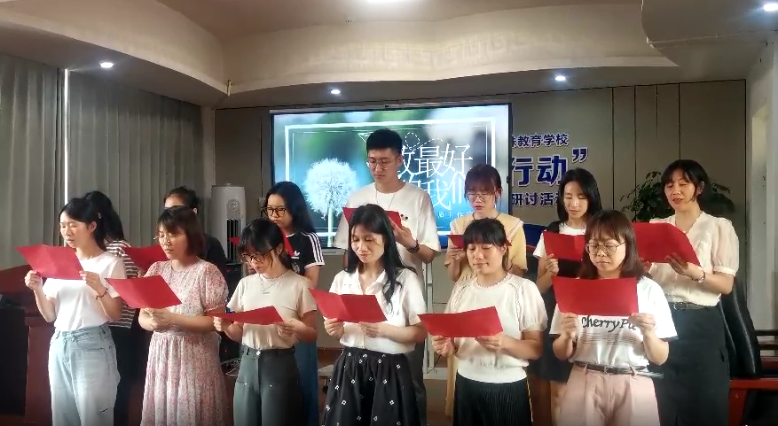 书香浸润心田,诗歌愉悦心灵。活动尾声,所有的学员以共诵散文诗《特教人的誓言》来表达对特殊教育的情怀,工作室所有成员将会用一生相守这个盟约,且行且思,挥斥方遒。