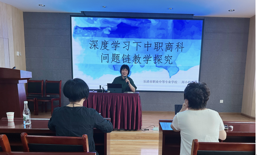 5月16日,工作室活动在平阳职教中心举行,上午听取周小峰老师讲座《深度学习下中职商科问题链教学探究》,为深入推进中职财经商贸课堂教学模式变革,给与会教师带来很多启发。