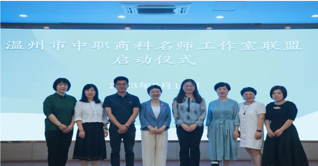 中午,工作室学员还参加了温州市中职商科名师工作室联盟启动仪式。首批温州市中职商科名师工作室联盟由徐克美名师工作室、曾淑萍名师工作室、叶海鹤名师工作室、张晓晨名师工作室、周小峰名师工作室、应冬兰名师工作室、黄晓蕾名师工作室等7个工作室组建,联盟秘书处设在平阳县职业教育中心。启动仪式全程由联盟发起人徐克美教授主持。本联盟旨在以中职商科名师工作室为载体,加强各名师和学员之间的交流,发挥名师引领作用,成为温州市中职财经商贸大类和创新创业等商科教师成长的孵化器。