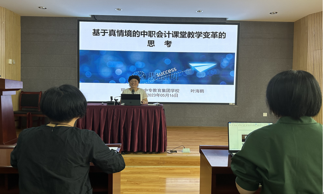 下午工作室主持人叶海鹤老师专题讲座《基于真情境的中职课堂教学改革》,让与会老师知道真情境对于教学的意义,并学会如何在财经商贸课堂中创设真实的教学情境。