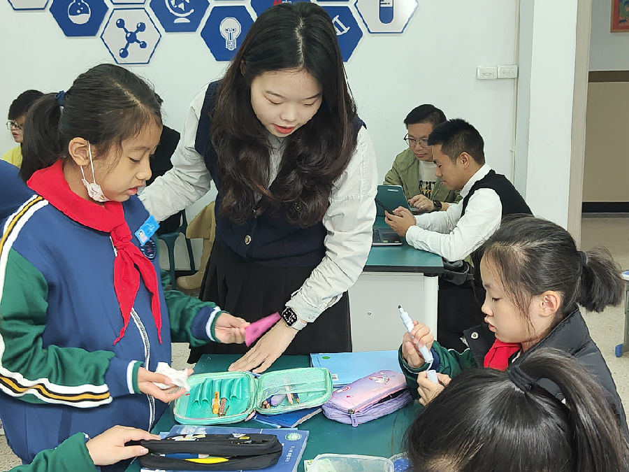 戴乐韵老师建议杨海萍老师关注月球小档案的课堂应用,研讨过程问题更聚焦。戴老师希望杨艳老师的这节课能将水温计和气温计建立联系,教师提问更有指向性,对其他的温度计研究,可以以素养作业的方式延续。戴老师提出温度计的使用是程序性知识,建议张军老师在以素养驱动素养目标,重点解决温度计的规范使用、读写方法,适当增加学生活动自主探究和研讨时间。她希望陈通瑞老师能规范操作评价、关注素养的达成、研讨的达成,将活动内容、材料以及评价单和手册进行有机整合。戴老师肯定黄婷婷老师引导语言精炼,对科学史的研究非常深刻,能引导学生通过充分验证,建立证据意识。可以在研究偏转角度的基础上,再对偏转方向作补充深化,达成共识。