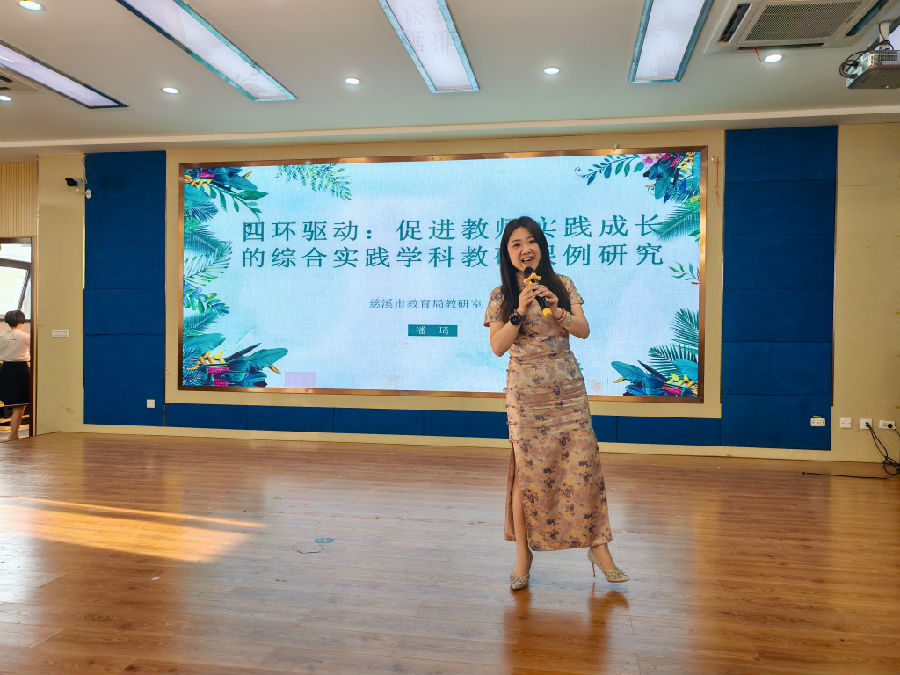 潘琦老师以其独特的视角和丰富的实践经验,为我们带来了一场关于综合实践学科教研课例研究的讲座。她首先介绍了“四环驱动”教研模式的核心理念和内涵,即“问题驱动、目标引领、实践探究、反思提升”。