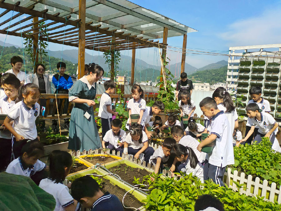 而陈丹老师的《水培绿菜》课程则引领学生们探索了无土栽培的新世界,通过实践学习,他们掌握了水培绿菜的基本技巧,体验到了现代农业的高效与便捷。这两堂课程不仅丰富了学生们的劳动体验,也让他们对生命和现代农业有了更深的理解和认识。下午的活动更是丰富多彩。龙湾区沙城镇第一小学的阮欢欢老师为学生们带来了《园中蔬菜我来种》的试课。阮老师从蔬菜的选择、移栽技巧到评价蔬菜生长状况等方面进行了详细的讲解,并通过生动的实例和实用的技巧,让学生们掌握蔬菜种植的基本知识和技能。在阮老师的引导下,学生们亲手进行蔬菜的移栽和种植,感受到了劳动的艰辛与喜悦,也对农业产生了浓厚的兴趣。