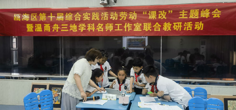 春风轻拂,绿丝绦摇曳,书声琅琅映照着日高的天空。为了深化新课程改革,提升小学综合实践活动课程的教学质量,温州、宁波、舟山三地携手举办了综合实践课堂教学实践交流活动。此次活动的主要目标在于加强教师间的沟通与交流,共同研讨教学策略,以期提升教师的专业素养和实践能力,进一步推动课程的创新与发展。本次活动于5月16日至17日在瓯海区的瞿溪第一小学隆重举行,由陈长春名师工作室精心承办。本次活动分两个会场举行。