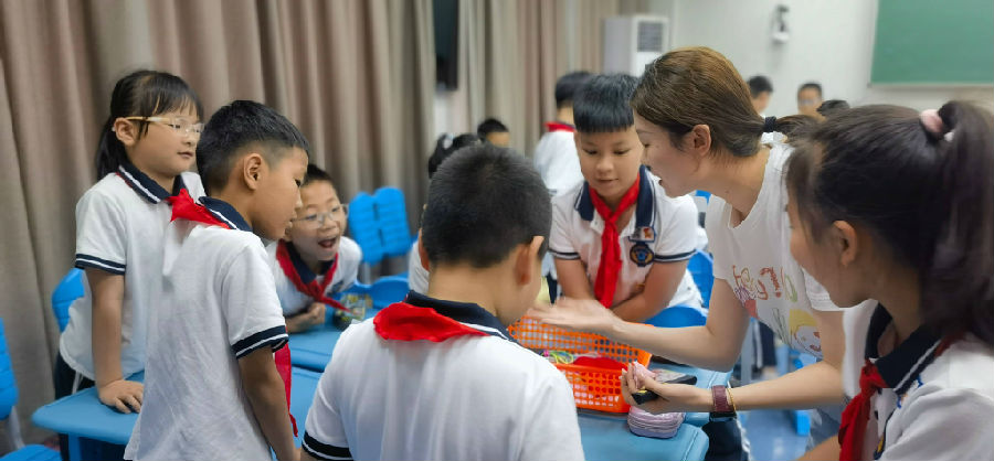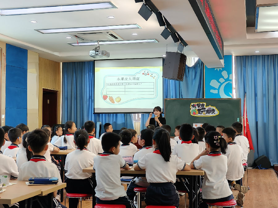 紧接着,慈溪市实验小学的陈璐佩老师为学生们带来《水果皮玩起来》这堂环保课程。陈老师从环保的角度出发,引导学生们将废弃的水果皮转化为可再利用的资源。孩子们在陈老师的指导下,将水果皮变成了有趣的玩具、装饰品和艺术品。他们不仅学到如何变废为宝,还增强了环保意识,明白了保护环境的重要性。这堂课程不仅丰富学生们的课外知识,还让他们在实践中体验到了劳动的乐趣和价值。