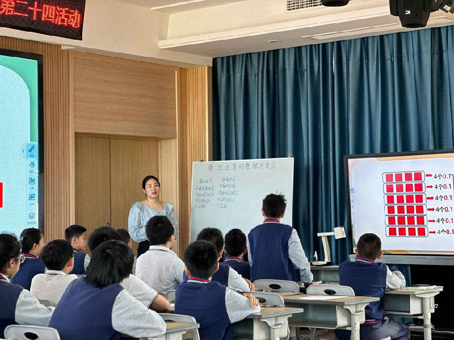 上午第一节是由曾秀晓老师和601班孩子共同带来课例《数的运算总复习》。 曾老师 以计数单位引入,唤醒旧知,通过问题引领帮助学生整理整数乘法、小数乘法和分数乘法。孩子们通过独立思考和小组交流,能够把各部分知识联系在一起,逐步理解数与运算的一致性。整堂课曾老师着眼于核心概念的理解,帮助学生用结构化的知识形成结构化的思维和方法。