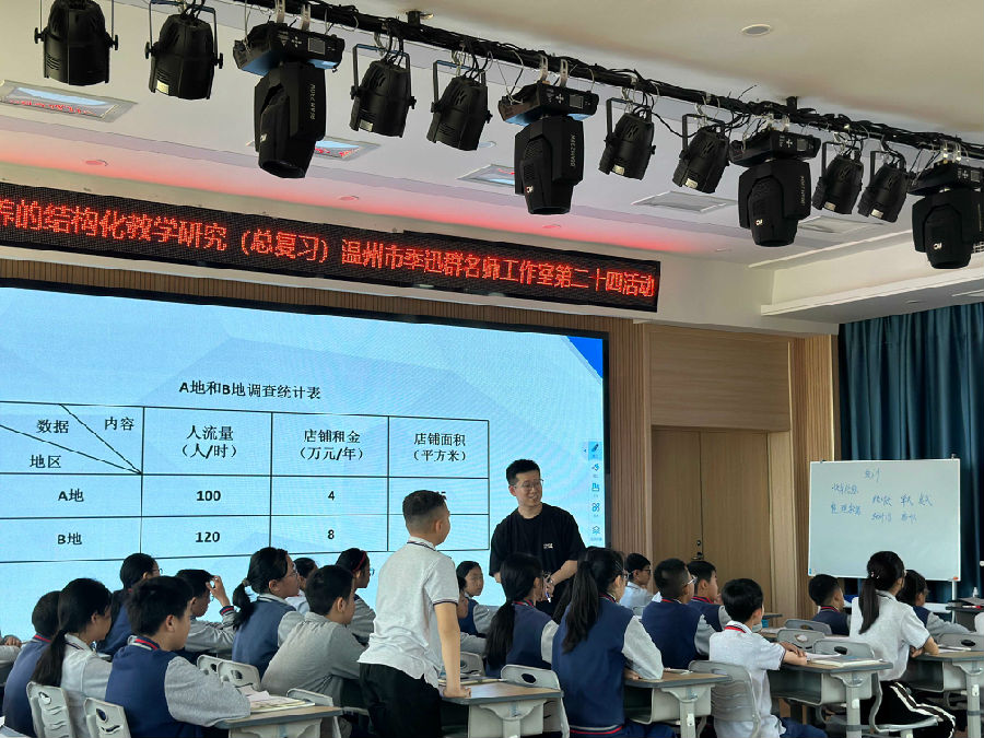最后季特对几位老师的课例展示做了专业的点评,并开展了讲座《基于结构化思维的复习课时间与思考》。季特就一线教学工作中常见的的困惑进行详尽的叙述,让老师们豁然开朗,受益匪浅。