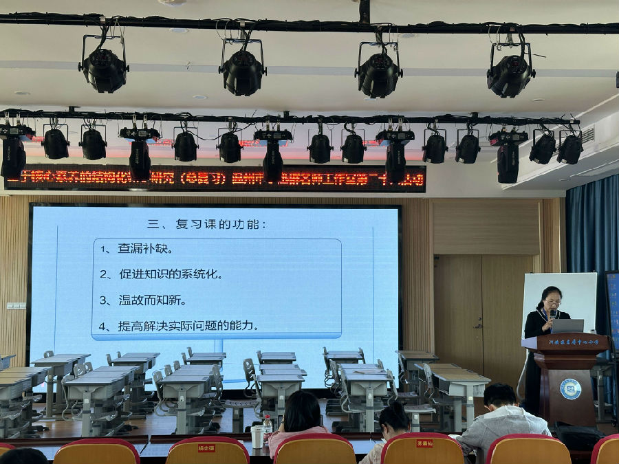 上午两节课后,赵志攀老师分享了《复习教学策略之我见》,赵老师向我们介绍了复习课常见的误区以及复习的功能,随后结合教材的编排和单元知识要点提出了自己的观点,最后为我们总结了如何进行有效复习的经验方法。