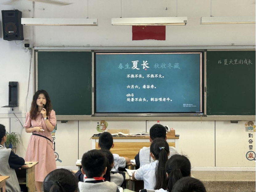 王斯莹老师在炎炎夏日和五年级的孩子带来了一堂《夏天里的成长》,王老师利用习作单元的特点,采用读写结合的方式,以选择自己最深刻的汉字为主题,先对课文进行了分析,了解课文写作的秘诀后,再实践运用在自己的写作中。整堂课,孩子们是主动的、积极的,课堂氛围十分热烈。
