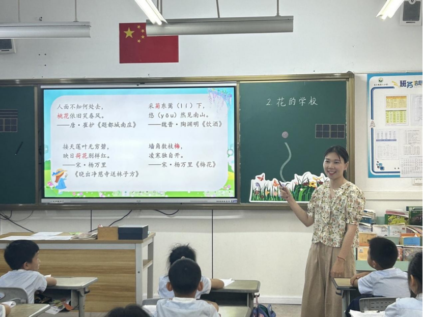 温静仪老师执教的是三年级上册第一单元第二课。《花的学校》是一篇经典的散文诗,它从儿童的视角,用诗一般的语言描绘了一群活泼天真、渴望自由的花孩子。温老师通过古诗积累朗读导入,揭示课题。紧接着学生质疑课题,带着疑问走进文本。在字词学习时,温老师以词语分组的形式展开教学。通过词语归类,对比学生自身在学校的作息活动实际,制作了“花的学校”的作息活动表,很好地梳理了课文的主要内容。在分析课文时,温老师围绕“新鲜感”这一关键词,让学生们将课文内容与自己的学习生活勾连起来,进行朗读和分享,实现了语文学习的生活化。