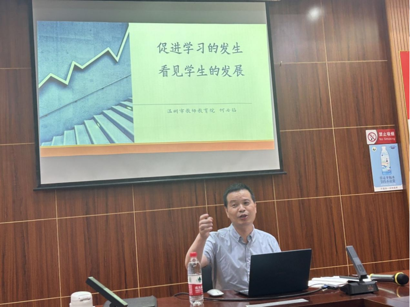 最后,何必钻老师的分享更是让学员们收获颇丰,何老师以《促进学习的发生 看见学生的发展》为主题,做了专题讲座。讲座中,何老师强调教师教学要以学生为主体,设置的活动要有思维含量,整场讲座干货满满。何老师理论和实际课例相结合的讲授方式,让学员们更好的了解和接受。