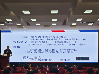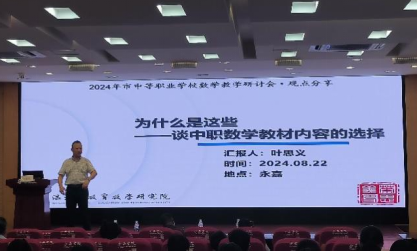 叶思义老师分享了中职数学教材的内容选择,也展示了国外的职业教育的部分教材内容,还从各位专家分享的内容中扩充了知识点的具体内容,并说明教师还需要探究新教材从中深挖知识内容。最后,叶思义老师分享了拓展模块二的教学建议和温州中职数学学业水平测试考纲说明,鼓励教师们对教材要进行探究,深耕一线,发展职业教育。