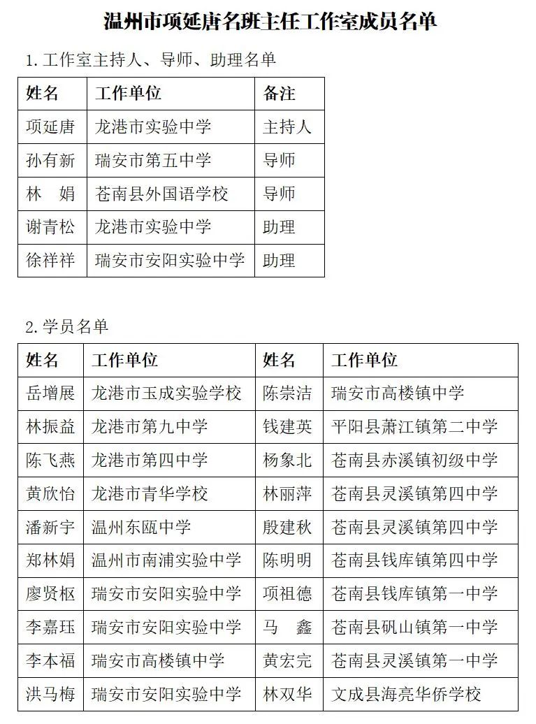 关于举行温州市项延唐初中名班主任工作室第33次活动的通知