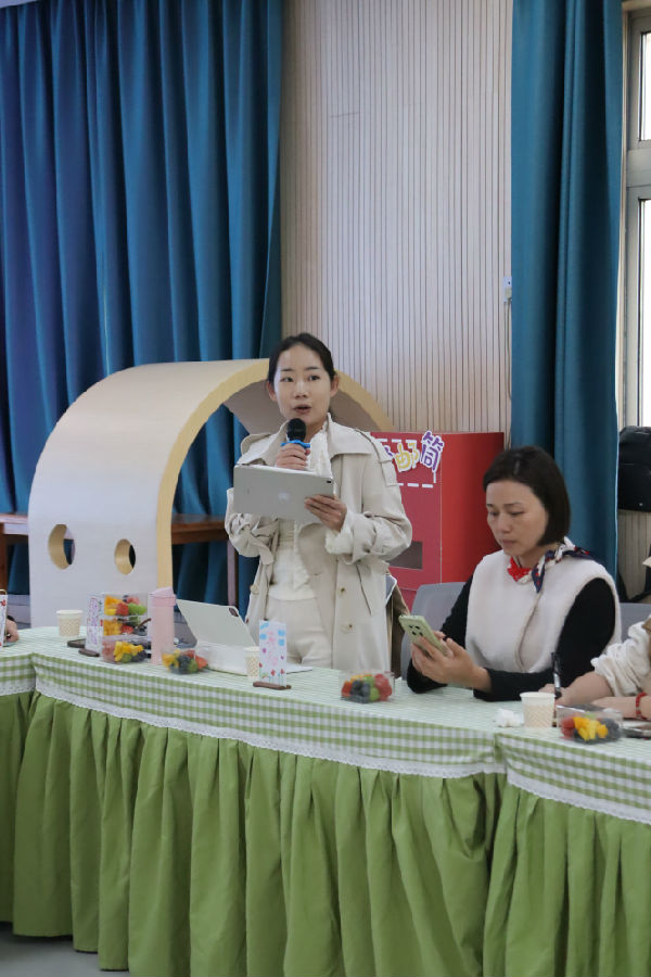 在沙群芳老师的分享中,她强调,幼儿园环境不应仅仅是孩子们学习游戏的场所,更应是他们心灵成长的沃土。在环境创设中,她通过生动的案例,展示了如何运用多彩的视觉元素、安全的材质选择以及融入自然的设计理念,为孩子们营造一个既富有启发性又安全无忧的学习与游戏天地。更重要的是,她鼓励孩子们成为环境创设的参与者,让环境成为他们自我表达、探索发现的乐园。沙老师的分享,不仅揭示了儿童友好型环境创设的深层意义,更为我们的教育实践提供了深刻的启示与指导。
