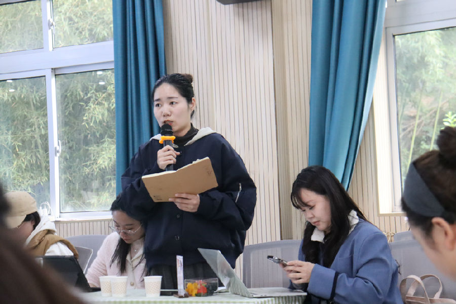 在环境观摩活动结束后,工作室成员们聚集一堂,基于各自的观察和发现展开了深入的讨论。老师们也踊跃分享了他们在互访过程中获得的直接体验,分享自己发现的亮点与心得,相互学习,共同进步。同时聚焦环境创设中的建议点,大胆剖析,在思想碰撞中,反思并探讨如何进一步优化游戏环境创设。
