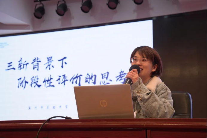 温州市实验中学的陈希希老师分享了《三新背景下的阶段性评价思考》。陈老师针对新课标、新教材、新中考背景下的教学评价进行了深入的思考和分析,干货满满,为与会者提供了新的视角和思路。