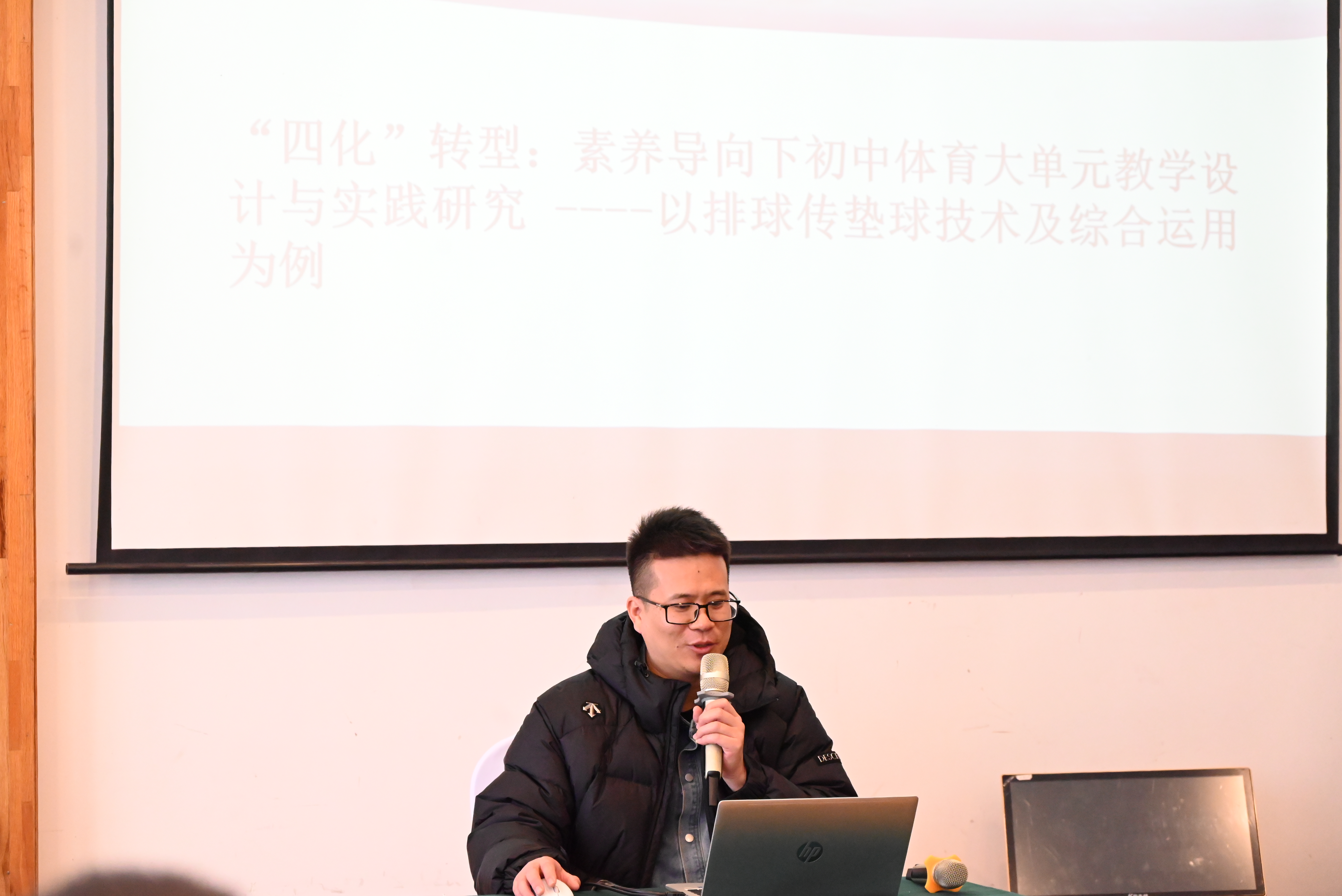 何雷老师分享的论文题目为《“四化”转型:素养导向下初中体育大单元教学设计与实践——以排球传垫球技术及综合运用为例》,旨在通过实例阐明“课堂四化转型”对策,并提出实施中的困惑。