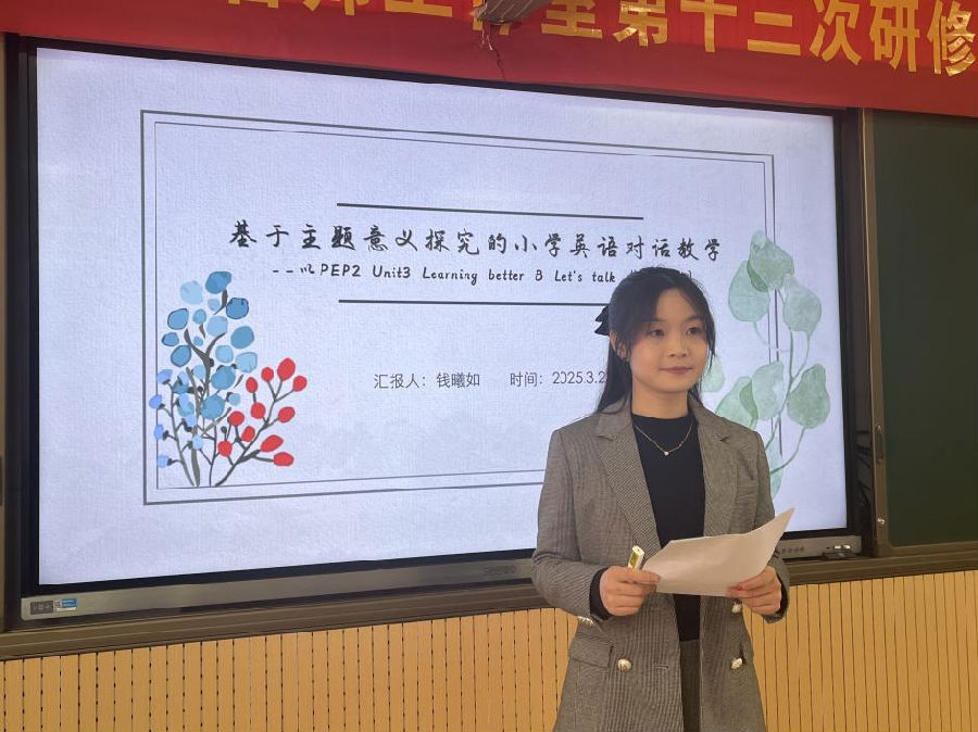 在“基于主题意义探究的小学英语对话教学”研讨活动中,钱曦如老师以 PEP2 Unit3 Learning better B Let's talk 为范例展开分析。她结合汪老师的课例指出,汪老师通过感官猜物、主题游戏等活动,采取立足文本语境、拓展语用的策略开展教学活动。钱老师认为可以从深化主题内涵,通过小组讨论、实践性作业促进深层理解;优化活动设计,兼顾不同水平学生需求,推动对话教学向培养综合素养的深度学习转型等几方面进行课程优化。
