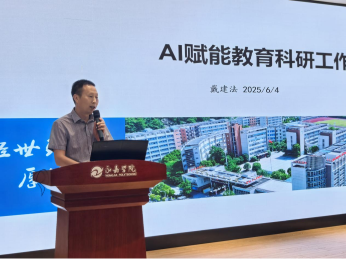 为深化人工智能教育在课堂中的实践与创新,2025年6月4日,温州市戴建法名师工作室第14次活动在永嘉县第二职业学校举行。本次活动分为公开课展示、评课交流和专题讲座三个环节,由工作室主持人戴建法老师主持。
