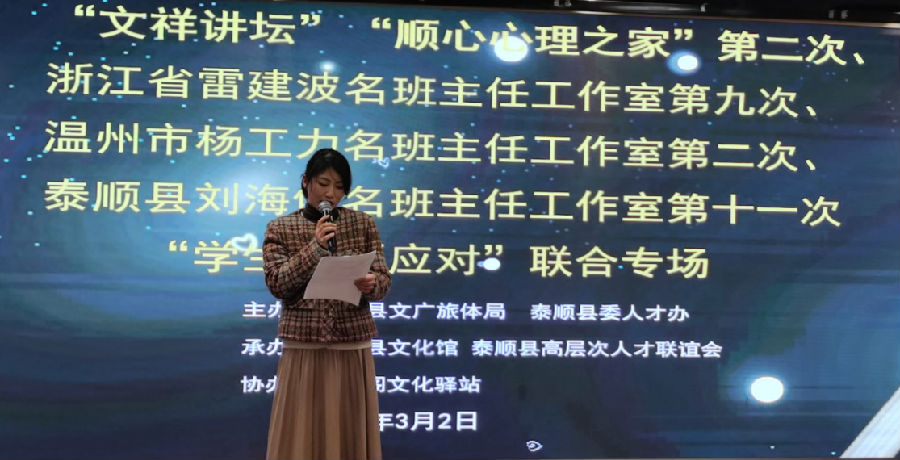春意盎然,学意正浓。2024年3月2日下午,温州市杨工力“名师送教”工作室携手浙江省雷建波名班主任工作室、泰顺县刘海河名班主任工作室,在泰顺县文化馆318文祥阁文化驿站成功举办了一场以“学生问题的艺术应对”为主题的联合研修活动。来自三个工作室的全体成员齐聚一堂,展开了一场为期半天的思想碰撞与智慧共享。