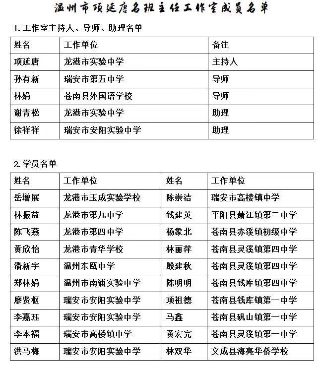 温州市项延唐初中名班主任工作室全体成员(附名单)